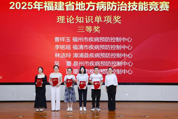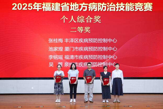 日前,福建省疾病预防控制局主办、福建省疾病预防控制中心承办的2025年福建省地方病防治技能竞赛落下帷幕。泉州市卫健委(疾控局)代表队荣获团体一等奖;泉州市疾控中心吴蕾荣获地方性氟中毒技能单项奖一等奖、理论知识单项奖三等奖及个人综合二等奖;丰泽区疾控中心张桂梅荣获地方性砷中毒技能单项奖二等奖、理论知识单项奖二等奖及个人综合奖二等奖;泉州市疾控中心蒋小妍荣获碘缺乏病和水源性高碘技能三等奖。