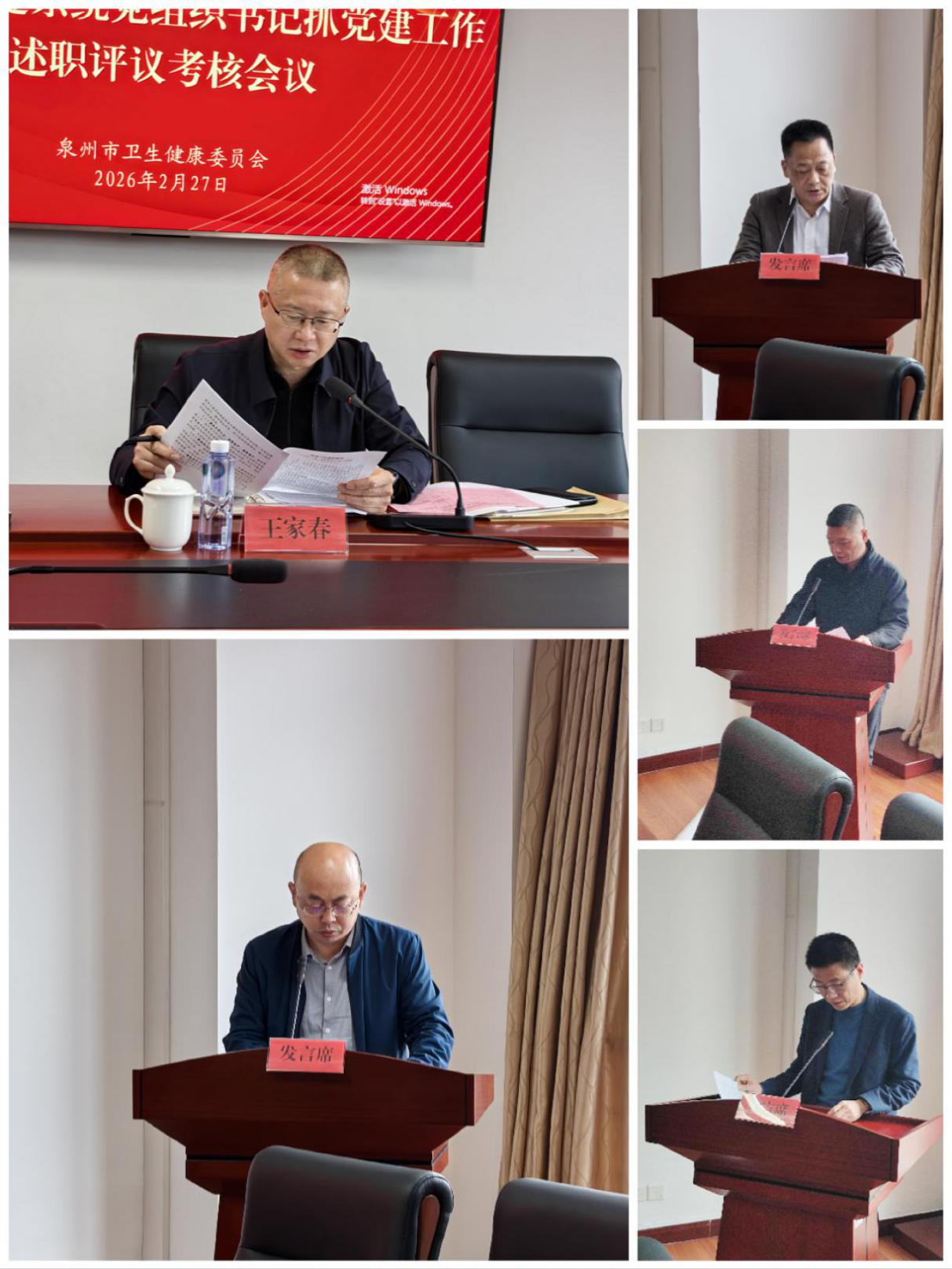 2月27日,泉州市卫健委召开全市公立医院党建工作推进会暨市直卫健系统党组织书记抓党建工作述职评议考核会议。会议深入学习贯彻习近平总书记关于党的建设的重要思想,认真落实市委、市政府关于深入开展“三争”行动的部署要求,全面回顾总结过去一年全市公立医院党的建设工作,检视评议市直卫健系统各单位党组织书记履职情况,为2026年及“十五五”开局之年的党建与业务深度融合绘就蓝图。