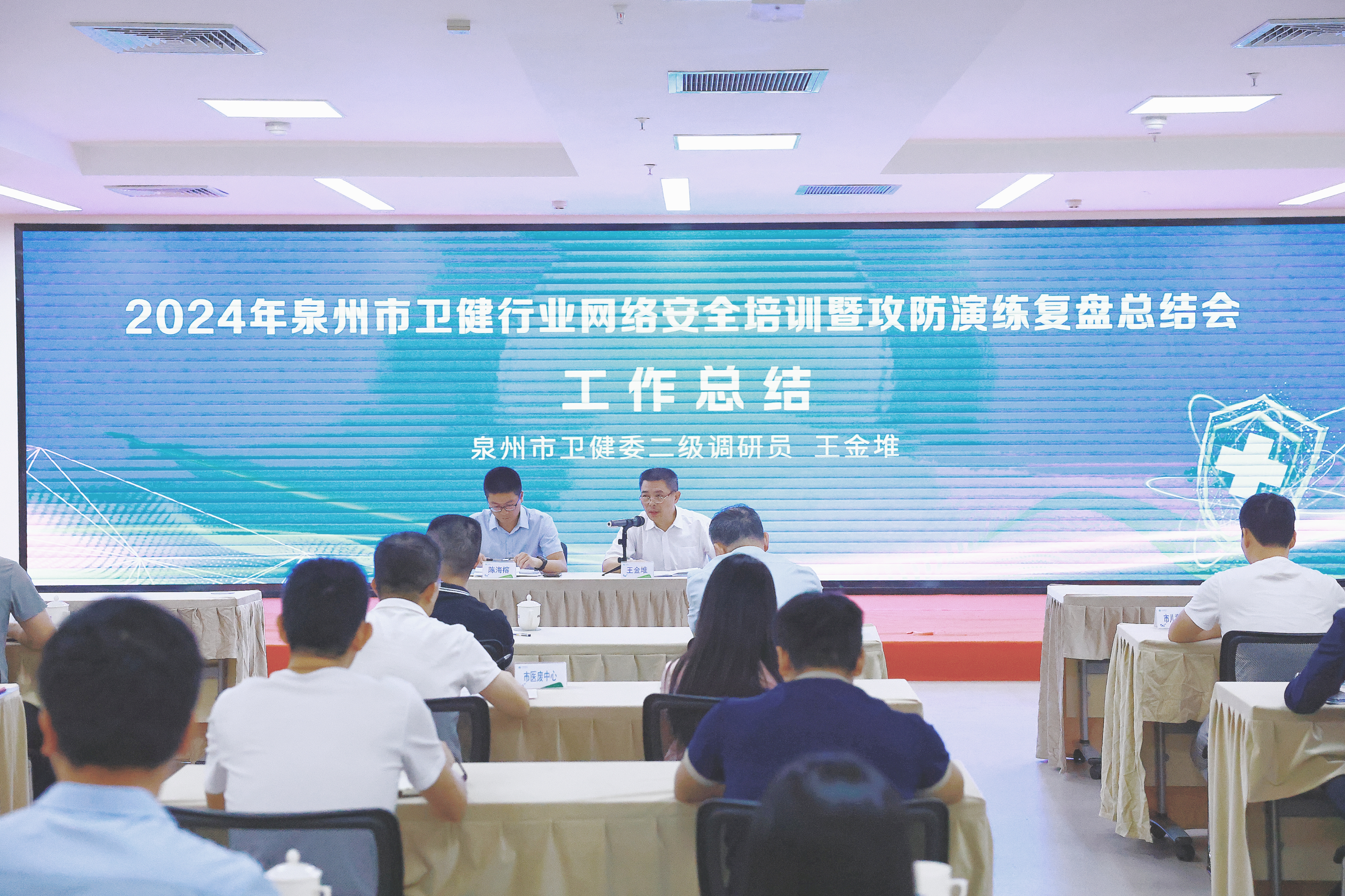 近日,泉州市卫生健康委员会圆满完成了2024年度全市卫生系统网络信息安全攻防演练,并举行网络安全培训暨攻防演练复盘总结会。