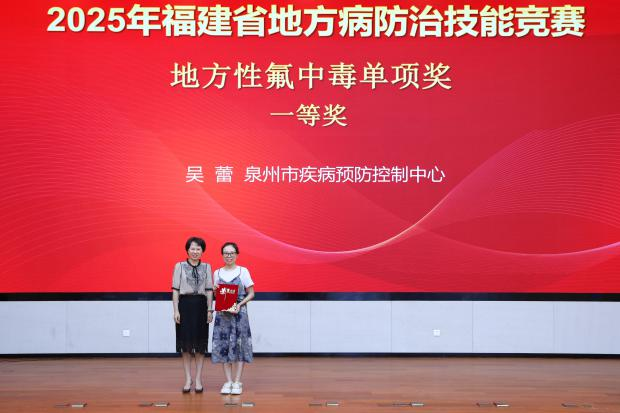 日前,福建省疾病预防控制局主办、福建省疾病预防控制中心承办的2025年福建省地方病防治技能竞赛落下帷幕。泉州市卫健委(疾控局)代表队荣获团体一等奖;泉州市疾控中心吴蕾荣获地方性氟中毒技能单项奖一等奖、理论知识单项奖三等奖及个人综合二等奖;丰泽区疾控中心张桂梅荣获地方性砷中毒技能单项奖二等奖、理论知识单项奖二等奖及个人综合奖二等奖;泉州市疾控中心蒋小妍荣获碘缺乏病和水源性高碘技能三等奖。