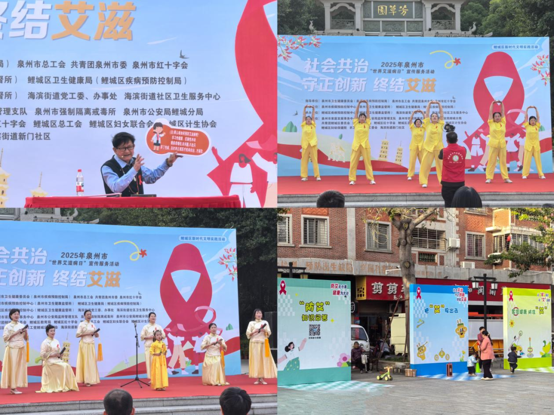 11月28日下午,泉州市芳草园中心广场人头攒动,由泉州市卫健委(泉州市疾控局)、泉州市疾控中心(市卫监所)、鲤城区卫健局(鲤城区疾控局)主办的“世界艾滋病日”主题宣传活动拉开序幕。这场以“社会共治,守正创新,终结艾滋”为主题的宣传活动,吸引了众多市民参与,现场参与的各个部门用专业科普打破偏见,用温情互动凝聚共识,为泉州防艾事业再添浓墨重彩的一笔。
