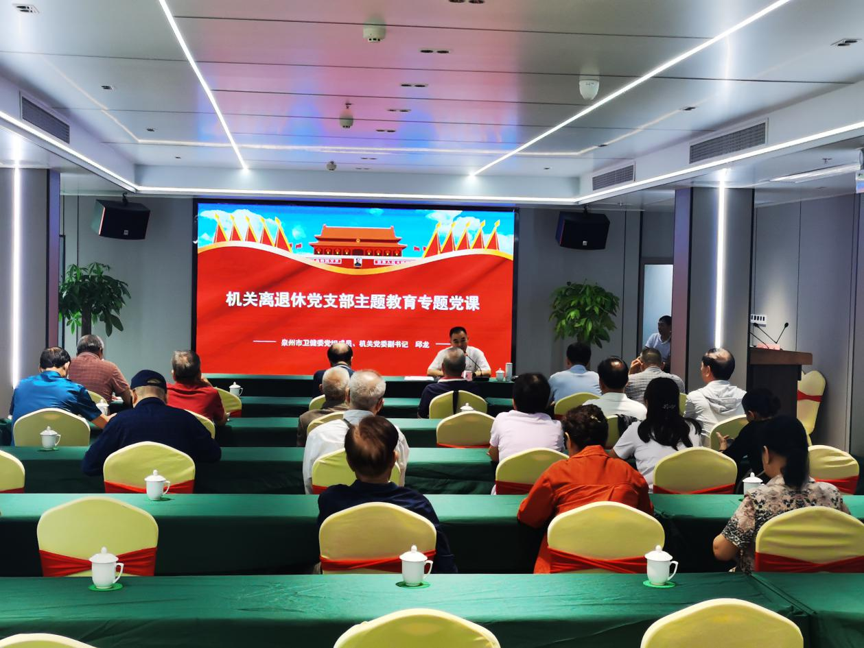 10月18日,根据市委学习贯彻习近平新时代中国特色社会主义思想主题教育工作要求和市卫健委党组主题教育工作安排,泉州市卫健委党组成员、机关党委副书记邱龙为机关离退休支部党员上专题党课。邱龙对机关离退休党员干部积极为泉州卫健事业高质量发展建言献策、传递正能量表达诚挚的感谢,并结合市卫健委机关老干部工作实际情况,从离退休党员干部参加主题教育、习近平总书记关于卫生健康工作的重要论述、今年来市卫健委的主要工作成效和下一步工作安排等三个方面为支部党员上专题党课。