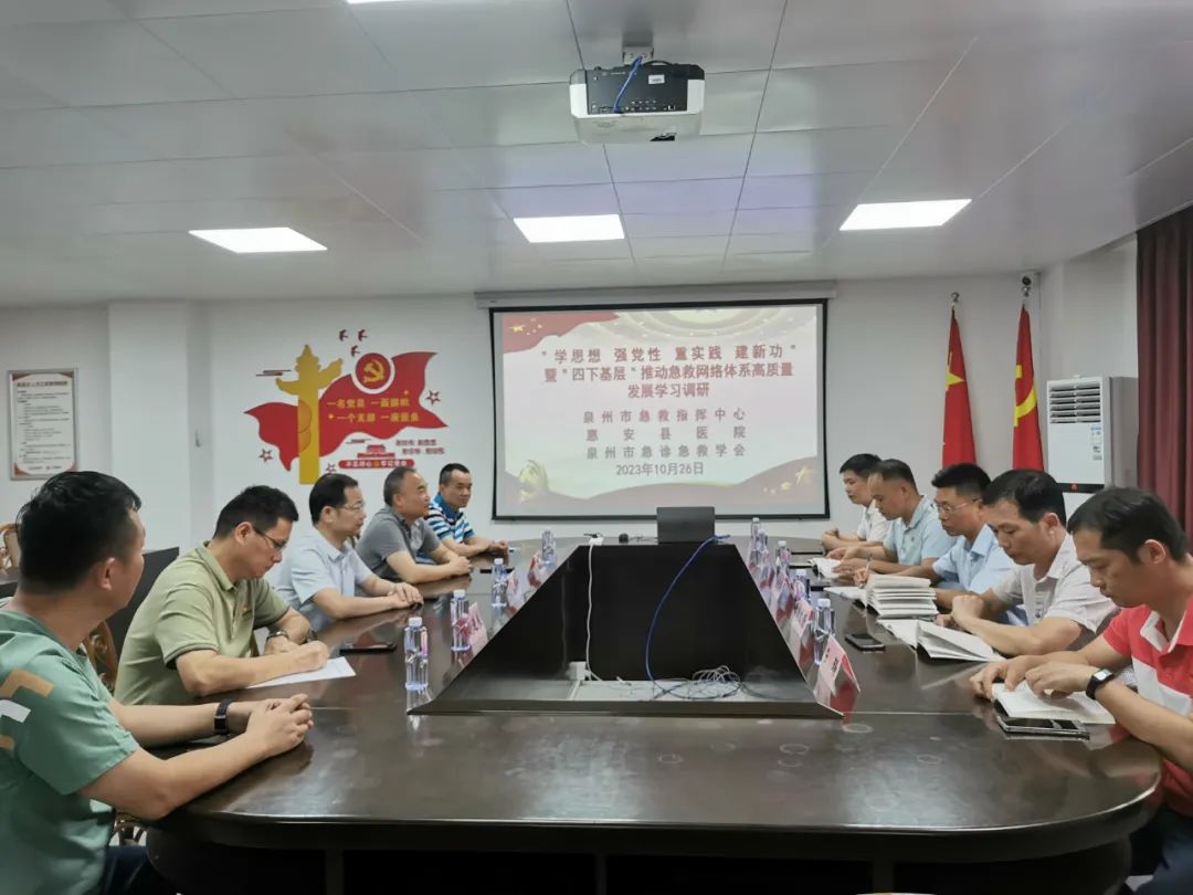 调研组一行先后深入惠安县急救中心、东岭镇中心卫生院(惠安县惠东华侨医院)急救站,围绕“如何推动急救网络体系高质量发展”开展调研。调研组成员详细了解惠安急救网络体系建设情况、急救站运行情况。学习研讨环节,胡远扬副主任首先领学了党的二十大报告之“高质量发展是全面建设社会主义现代化国家的首要任务”等章节。随后大家结合二十大报告的精神围绕院前急救网络构建和完善、急救工作开展、急救车辆配置、人员配备、服务半径、信息化建设等方面展开深入研讨、交流。调研组详细解答惠安县急救中心、基层急救站一线人员提出的实际运行中的问题和困难,如急救人员不足招聘困难、急救人才培养、急救技能培训、110联动响应等问题,给出意见和建议,深受大家喜爱。调研组并对现场无法解决的问题做详细记录,尤其涉及体制机制等问题,将进行汇总积极向上级反映。